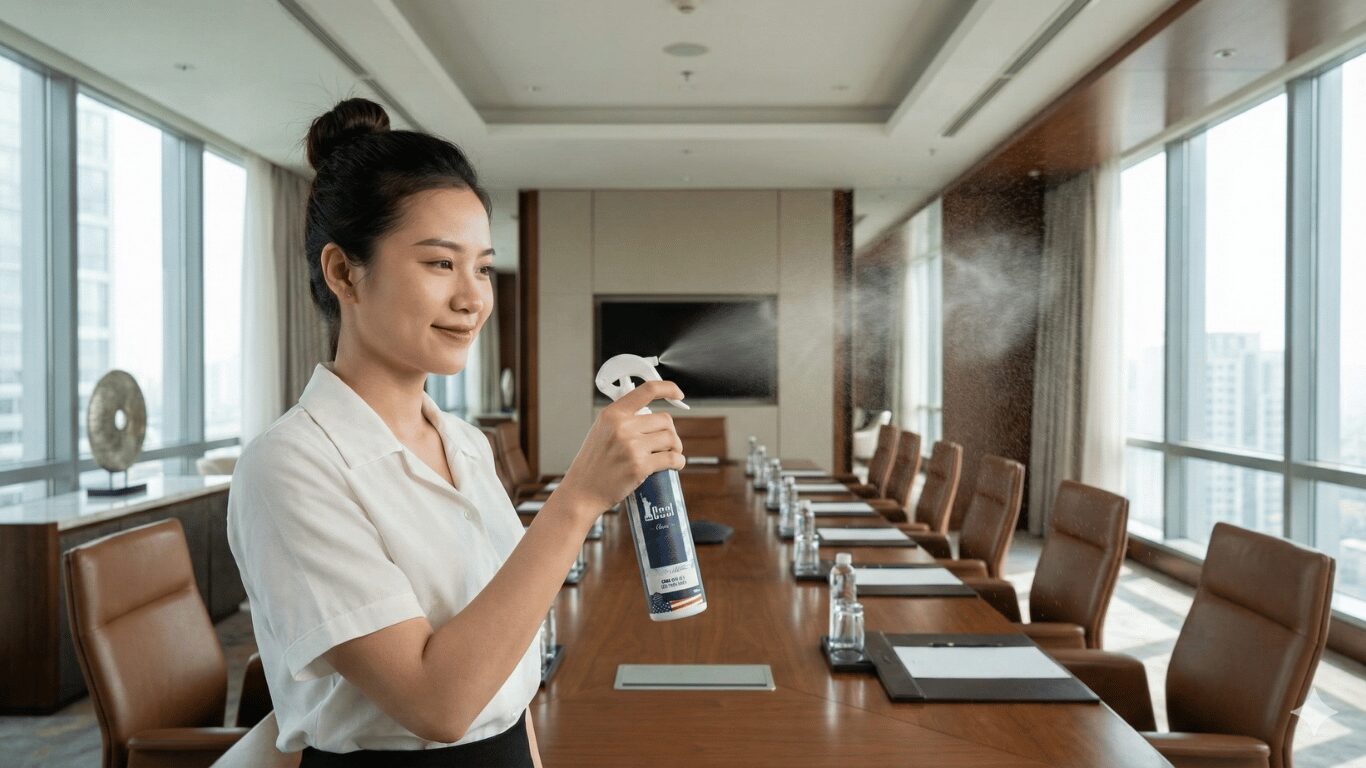 Phòng kín, máy lạnh chạy liên tục và mùi thức ăn từ tiệc trà là nguyên nhân khiến phòng họp có mùi khó chịu. COOL không chỉ là xịt thơm, mà là giải pháp xử lý không khí:
